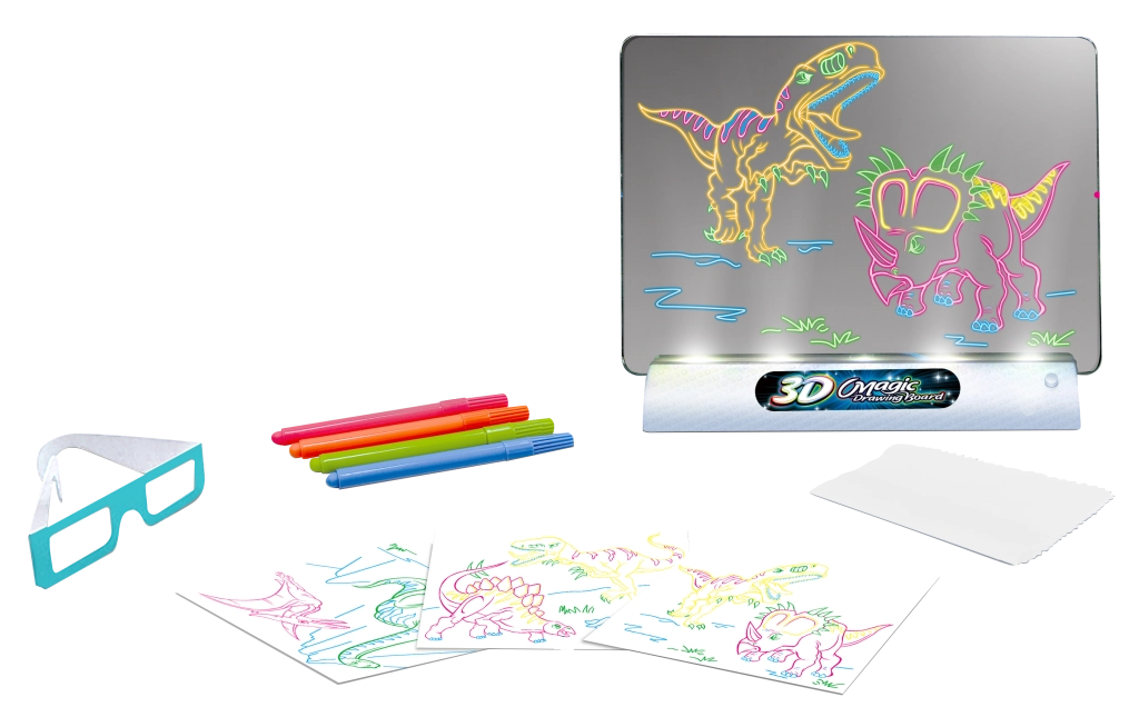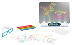 Ta tablica do rysowania 3D pozwala dzieciom zobaczyć swoje rysunki w nowym wymiarze. Wystarczy narysować obrazek na dołączonej płytce, włożyć go do czytnika i założyć okulary 3D. Efekt? Trójwymiarowe arcydzieło, które zachwyca!