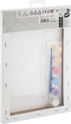 - Płótno z nadrukiem, 6 farb akwarelowych, pędzel