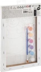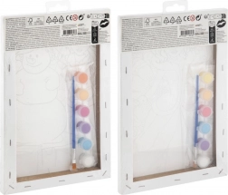 - Zawartość opakowania: płótno z nadrukiem, 6× farba akwarelowa, pędzel