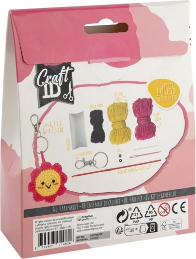 - W opakowaniu znajdziesz: szydełko, włóczkę (100% poliester), materiał wypełniający, metalowe kółko z karabińczykiem oraz igłę.