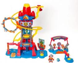 Przygotuj się na niezapomnianą zabawę z wieżą treningową SuperThings S! Ta ekscytująca wieża z efektami świetlnymi i dźwiękowymi oferuje idealne miejsce do trenowania akrobatycznych lotów Twojej figurki Kazoom Kid w Kaboom City. Umieść figurkę na szczycie wieży i obserwuj, jak zjeżdża w dół, gotowa na pełną akcji przygodę.
