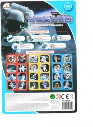 Wyrusz w przygodową podróż po kosmosie z tym sprytnym połączeniem latarki i projektora! Wyświetlaj 24 kolorowe obrazki planet, gwiazd i rakiet, opowiadaj historie o odkryciach i ciesz się magiczną świetlną atmosferą. Świetna zabawka dla małych astronautów i miłośników kosmosu.