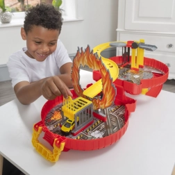 Rozkładany tor z przeszkodami, w tym „ognistym” kołem, barierami i pętlą, pobudza emocjonujące misje i trening szybkiego ratunku.