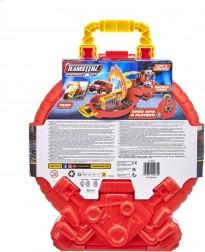 Ten strażacki zestaw TEAMSTERZ w praktycznym kuferku w kształcie koła w mgnieniu oka zmienia się w dynamiczny tor do zabawy. Dzieci mogą pokonywać przeszkody autkiem, zjeżdżać rampą ucieczkową i trenować akcję przy „ogniu”. Kompaktowe wymiary i uchwyt zapewniają łatwe przenoszenie w domu i w podróży.