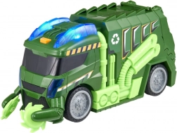 Niebieskie migające światło oraz autentyczne dźwięki silnika i śmieciarki wciągają dzieci do zabawy i pobudzają wyobraźnię.