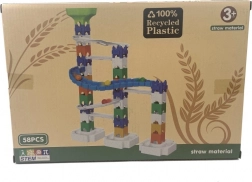 Ten modułowy tor kulkowy zapewni dzieciom i dorosłym długie godziny zabawy. Z 58 precyzyjnie wykonanych elementów łatwo zbudujesz zarówno proste, jak i bardziej złożone trasy, po których kulki mkną płynnie i bezpiecznie. Zestaw idealnie rozwija myślenie logiczne i cierpliwość.