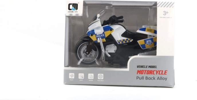 Świetny policyjny motocykl z funkcją pull-back i efektami. Doskonała zabawka dla małych rajdowców, gotowa do natychmiastowej zabawy.
