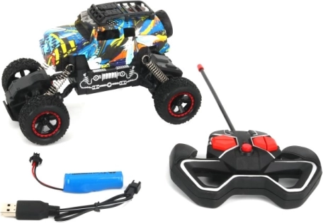 Ciesz się ekscytującą jazdą z zdalnie sterowanym samochodem terenowym, który oferuje maksymalną prędkość 15 km/h i zachwycające dynamiczne efekty świetlne.