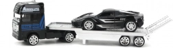 - Realistyczny design – detaliczna kabina, naczepa/platforma i sportowe autko