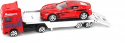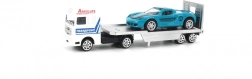 Zabawkowa nakręcana laweta z metalowym autkiem dla dzieci od 3 lat. Wystarczy naciągnąć do tyłu i puścić, a transporter ruszy do przodu. Realistyczne detale, wytrzymała konstrukcja die‑cast i świetna zabawa w ratowanie i przewóz aut dla małych pasjonatów.