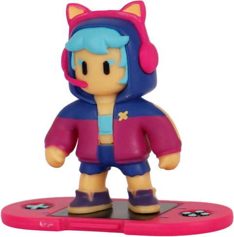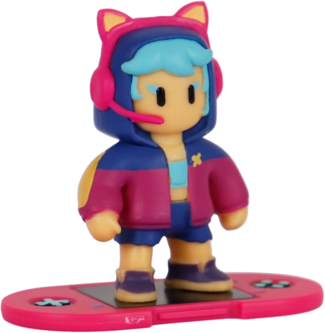 Wesołe kolory, brokat i modowe dodatki spotykają się z dynamicznym designem postaci STUMBLE GUYS – idealne do ekspozycji i zabawy.