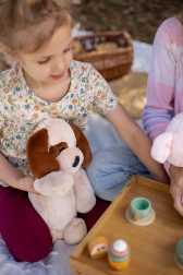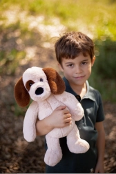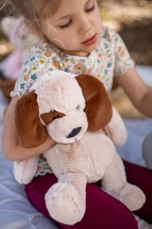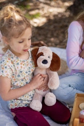 Przy długości 41 cm ten pluszowy piesek jest idealny, aby dzieci mogły zabrać go do łóżka lub w podróż.