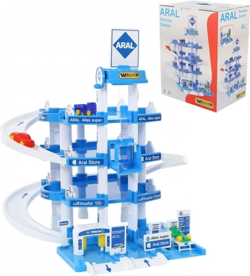 Czteropiętrowy parking Aral ucieszy każdego małego entuzjastę motoryzacji. Ten zabawny parking oferuje windę, którą łatwo przewieziesz autka na najwyższe piętro, skąd mogą szybko zjechać w dół po drodze.