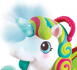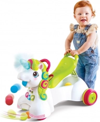 Siedzisko można łatwo podnieść w trybie chodzenia i złożyć do jazdy; pod siedziskiem oraz z przodu znajduje się miejsce na piłeczki. Jednorożec potrafi zbierać rozrzucone piłeczki i wypuszczać je na podłogę lub do koszyczka. Tylne koła mają 2 ustawienia prędkości dla początkujących i bardziej zaawansowanych użytkowników. Miękki róg rozświetla się po dotknięciu, co motywuje dzieci do interakcji i odkrywania.