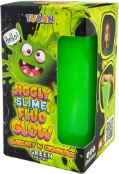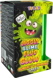 Zabawny, sprężysty i świecący – Jiggly Slime Fluo Glow od marki Tuban oferuje intensywny zielony kolor, który świeci w ciemności. Dzięki unikalnej recepturze slime jednocześnie trzęsie się jak galaretka i rozciąga jak guma, więc jest idealny do zabawy sensorycznej, trików i nieskończonego ugniatania.