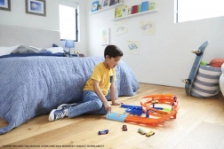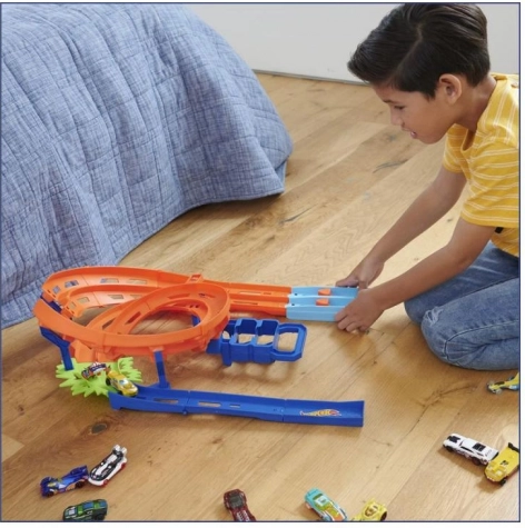 Dzięki temu niesamowitemu torowi wyścigowemu Hot Wheels dzieci mogą cieszyć się wyścigami z przyjaciółmi. Tor zawiera dwa autka, które mogą od razu rozpocząć ekscytujące wyścigi i kaskaderskie triki. Dzięki możliwości złożenia toru na pół przechowywanie jest proste i praktyczne. Uchwyt z miejscem na autka umożliwia łatwe przenoszenie i wygodną organizację.