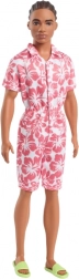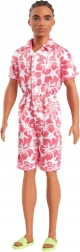 Ken ma na sobie stylowy kombinezon z hawajskim motywem, który perfekcyjnie wyraża jego osobowość.