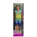 Lalka Ken ma szeroką sylwetkę, ubrana jest w ombre top, który przechodzi z niebieskiego do zielonego, idealny dla wszystkich osobowości i okazji. Postrzępione dżinsowe szorty i srebrne trampki dopełniają jej uniwersalny i wyrafinowany wygląd, zarówno na spotkania z przyjaciółmi, jak i na zabawy na plaży.