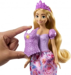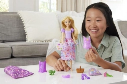- Łatwo ubierająca się lalka Roszpunka ma dwa gorsety z możliwością łatwego przypięcia, dwie spódnice z nadrukowanymi ikonami z jej opowieści i dziewięć tematycznych akcesoriów.