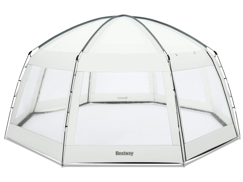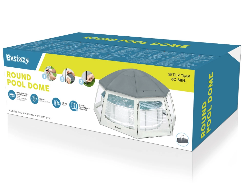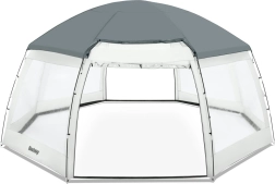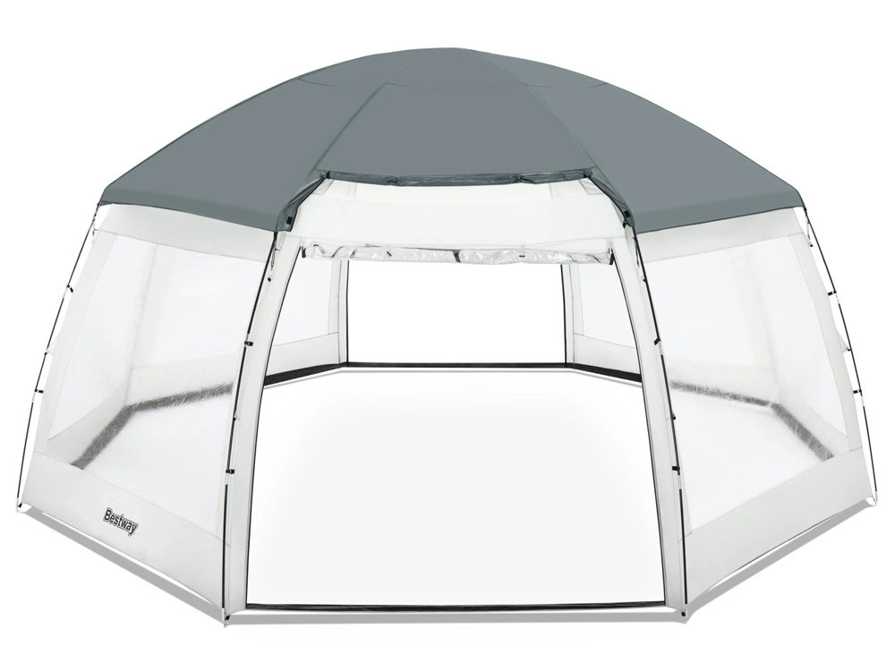 Praktyczny pawilon BESTWAY 2w1 zamieni Twój ogród w przyjemną oazę – posłuży jako osłona do basenu naziemnego i altana ogrodowa. Dzięki wytrzymałej tkaninie poliestrowej z powłoką jest wodoodporny, chroni przed słońcem (UPF 50+), deszczem i owadami, a jednocześnie pomaga ograniczyć wychładzanie wody w basenie. Przestronna kopuła z przezroczystymi oknami zapewnia światło, widok i wygodne użytkowanie w każdą pogodę.