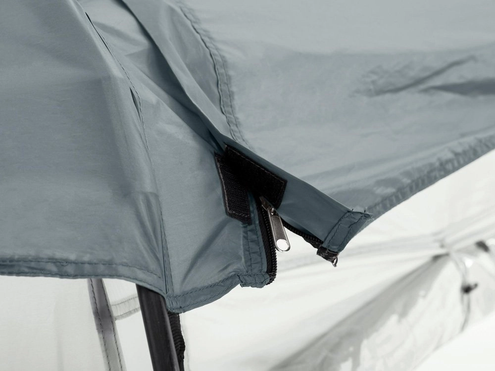 Powłoka z poliestru 190T z laminatem PU 2000 mm oraz ochroną UV UPF 50+ chroni przed słońcem i deszczem, a przezroczyste okna przepuszczają światło.