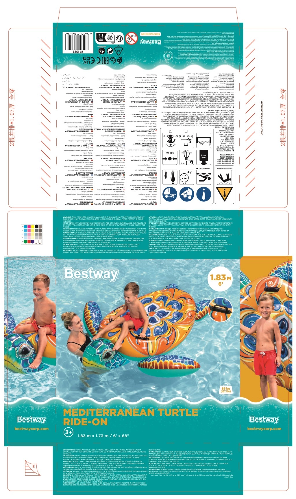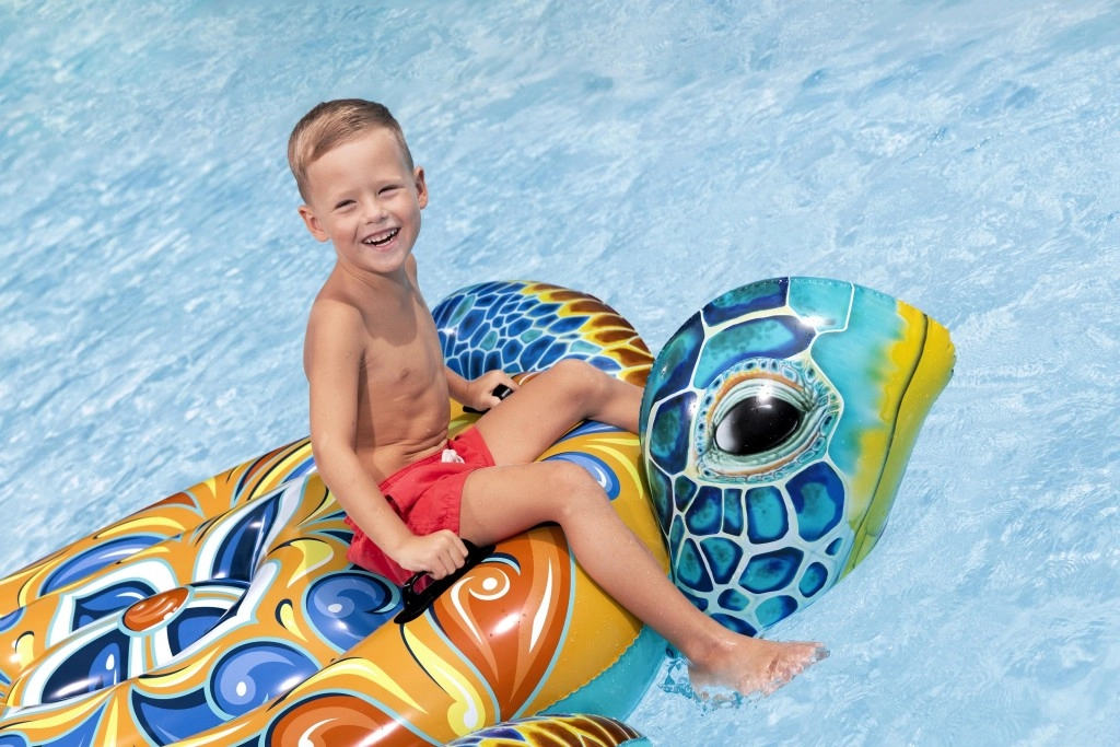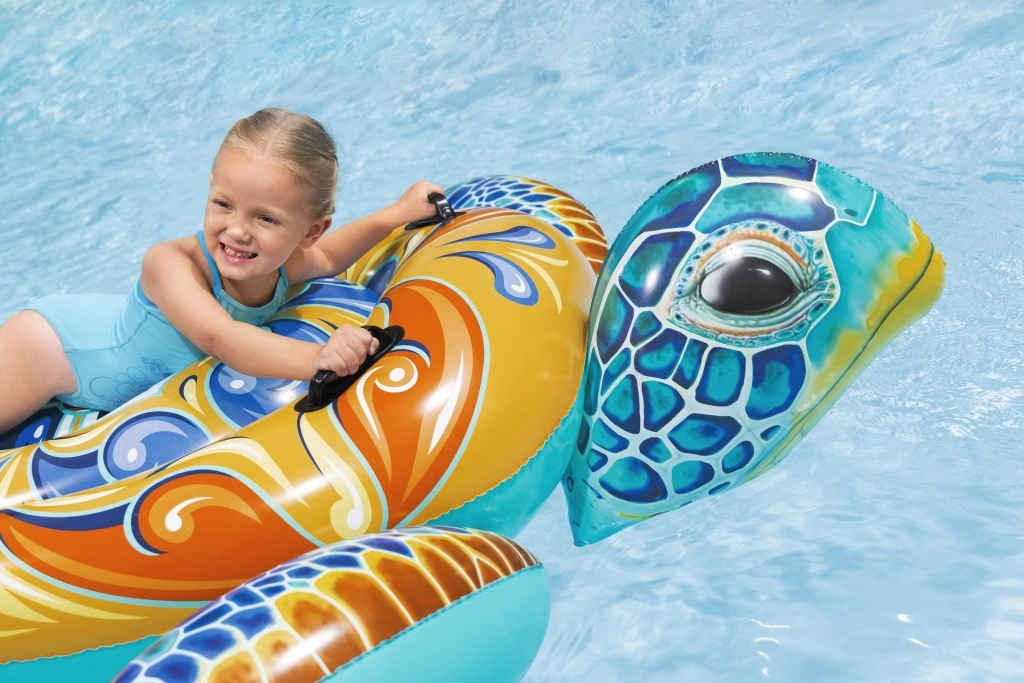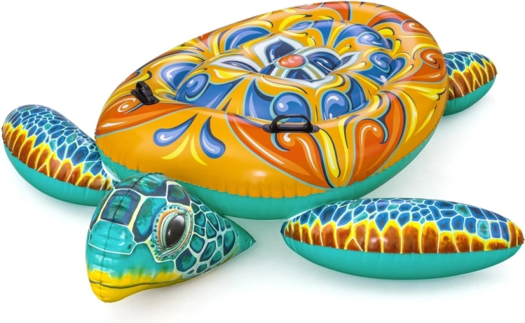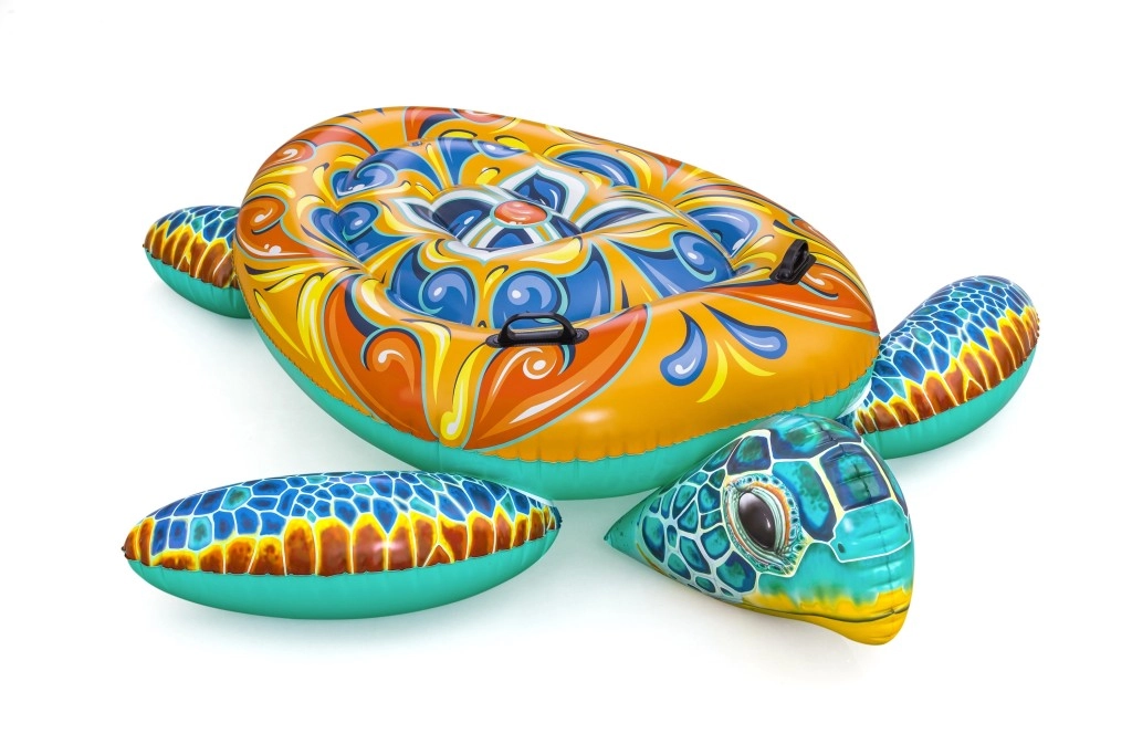 Dmuchany żółw Bestway z wyrazistym nadrukiem Majolika to idealny wybór do wodnych szaleństw. Dzięki dużym wymiarom 183 × 173 cm zapewnia komfortową przestrzeń do leżenia i pływania, a dwa zintegrowane uchwyty gwarantują pewny chwyt i stabilność przy wsiadaniu oraz w trakcie zabawy.