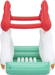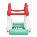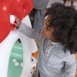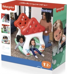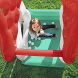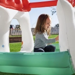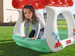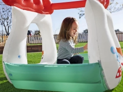 Nadmuchiwany domek Muchomor jest wykonany z trwałego PVC, które zapewnia stabilność i bezpieczeństwo. Miękkie nadmuchiwane ścianki chronią dziecko przed urazami, a szeroka podstawa zapobiega przewróceniu domku. Dzięki kompaktowym wymiarom można go łatwo ustawić w domu i na zewnątrz, tworząc idealne miejsce do zabawy.