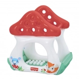 Domek wyróżnia się radosną kolorystyką w odcieniach zieleni, bieli i czerwieni. Dach w kształcie muchomora służy nie tylko jako osłona, ale też jako miejsce do sortowania kulek, co wspiera koordynację ręka–oko i uczy podstawowych umiejętności manualnych. W zestawie znajduje się 15 lekkich kulek, które czynią zabawę jeszcze ciekawszą.