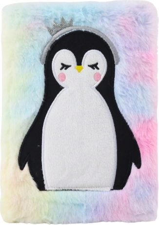 Kolorowa, puchata okładka z haftem pingwina z koroną i słuchawkami jest miękka w dotyku, chroni notes i sprawia, że wyróżnia się wszędzie.