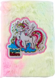 pluszowy notes A5 z jednorożcem, miękka pluszowa okładka, w linie