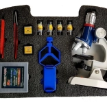 - Pęseta, nożyk, szpatułka, patyczek, 7× szkiełko podstawowe, probówki (łącznie 4 szt.), pudełko, gotowy preparat