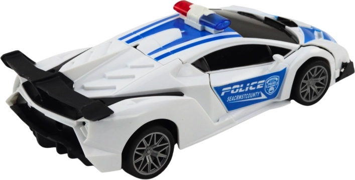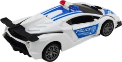 To stylowe policyjne auto w biało-niebieskiej kolorystyce wygląda jak prawdziwy radiowóz – ma migające światła, dźwięki syreny i podczas jazdy potrafi przekształcić karoserię w robota z unoszącą się maską. Po zakończeniu misji ponownie zmienia się w samochód, dzięki czemu dzieci mogą płynnie przełączać dwa tryby zabawy.