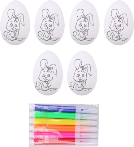 - Gotowy zestaw – 6 jajeczek + 6 kolorowych pisaków
