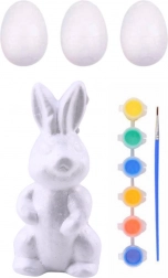 Wielkanocny zestaw z polistyrenowymi jajkami i zającem to idealny wybór do kreatywnego malowania z dziećmi. Zawiera 3 polistyrenowe jajka i figurkę zająca wraz z 6 farbami do malowania, które umożliwiają nieograniczoną kreatywność.