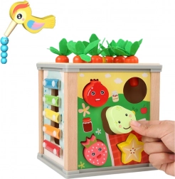 Ta innowacyjna zabawka łączy zabawę z nauką i rozwija umiejętności Twojego dziecka dzięki sześciu różnorodnym aktywnościom. Drewniana kostka jest świetnym narzędziem do rozwoju zdolności motorycznych i samodzielności.