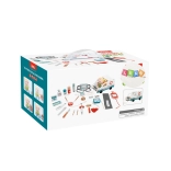 - Liczba elementów w zestawie: 22 elementy, w tym defibrylator, stetoskop, ciśnieniomierz, skalpel, karetka i inne akcesoria medyczne.