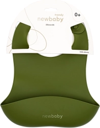 Silikonowy śliniaczek New Baby w eleganckim oliwkowo zielonym kolorze łączy styl i funkcjonalność do codziennego użytku. Wykonany z bezpiecznego materiału bez BPA.