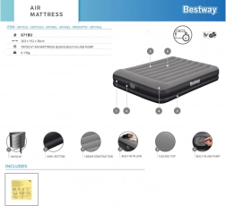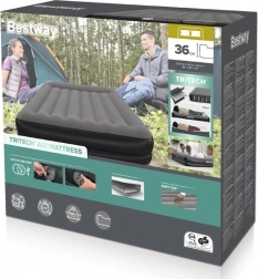 Komfortowy, dwuosobowy materac Bestway o wymiarach 152 × 203 × 36 cm oferuje szybkie napompowanie za pomocą wbudowanej pompy USB w 5–6 minut, stabilną konstrukcję Tritech odporną na rozciąganie, zintegrowaną poduszkę dla większej wygody oraz maks. udźwig 300 kg. Świetny do domu i na kemping.