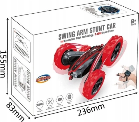 Auto RC Twister oferuje nowoczesne sterowanie gestami oraz klasyczny pilot, więc wybierzesz styl jazdy w zależności od nastroju. Z łatwością wykonuje obroty 360°, jazdę na 2 i 4 kołach, dynamiczne manewry we wszystkich kierunkach, a efekt podkreśla oświetlenie LED.