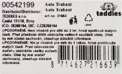 Ikoniczny model samochodu Trabant marki Welly w skali 1:60 ucieszy małych i dużych kolekcjonerów. Metalowe wykonanie, otwierane drzwi, szczegółowe wnętrze oraz wolnobieg zapewniają świetne wrażenia z zabawy i ekspozycji. Długość ok. 7 cm, mix kolorów, odpowiednie od 3 lat.