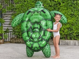 Nadmuchiwany wodny materac w kształcie żółwia wykonano z wytrzymałego PVC, które gwarantuje nie tylko trwałość, ale także bezpieczeństwo podczas użytkowania. Materac ma uchwyty dla wygodnego i bezpiecznego trzymania. Maksymalne obciążenie wynosi 45 kg, co czyni go odpowiednim dla dzieci od 3. roku życia.