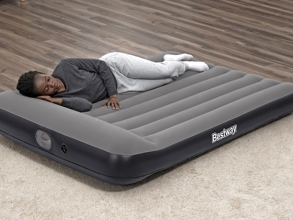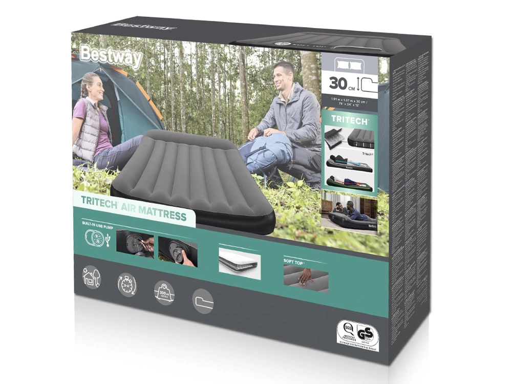 Materac dmuchany Bestway TRITECH to niezawodny towarzysz noclegów w domu i w podróży. Wewnętrzna konstrukcja TRITECH jest wzmocniona dla długotrwałego utrzymania kształtu i większej odporności na rozciąganie niż standardowe PVC. Przyjemna, welurowa powierzchnia zwiększa komfort i zapobiega ślizganiu się pościeli.