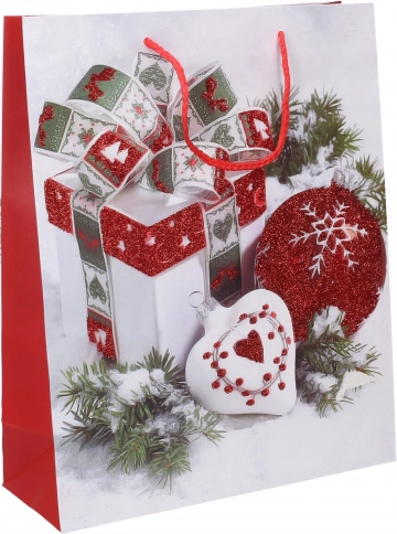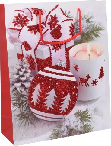 Ta średnia torba prezentowa o wymiarach 26x32x10 cm oferuje cztery różne świąteczne motywy, które nadadzą Twoim prezentom niezapomniany wygląd. Wykonana z wysokiej jakości materiału, zapewnia trwałość i wytrzymałość, dzięki czemu poradzi sobie nawet z większym obciążeniem.