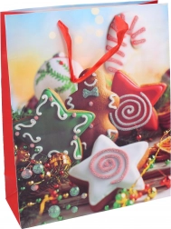 Świąteczna torba prezentowa rozmiar M to idealny wybór do pakowania średniej wielkości prezentów. Ta torba jest dostępna w czterech różnych wzorach, które przynoszą magię Świąt do każdego zakątka Twojego domu. Dzięki swoim wymiarom 26x32x10 cm zapewnia wystarczająco miejsca dla różnych rodzajów prezentów.