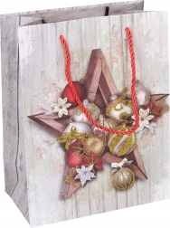 Świąteczna torebka prezentowa o wymiarach 23x18x10 cm jest idealna do pakowania mniejszych upominków, zachowując jednocześnie elegancję i magię Świąt.