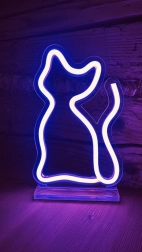 Neonowa lampka LED kot wnosi do wnętrza przyjemną, nastrojową poświatę i nowoczesny design. Przezroczysta podstawa i czyste kontury tworzą elegancki akcent, który pasuje do każdego wystroju – od pokoju dziecięcego po biuro czy kawiarnię.