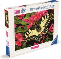 Ta układanka przedstawia żywy obraz motyla z wyrazistymi żółtymi i czarnymi wzorami ozdobionymi akcentami niebieskiego i czerwonego. Przepiękne detale dodają motywowi uroku i elegancji.