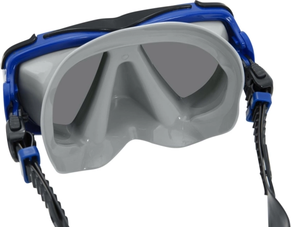 Maska z regulowanym paskiem i miękką silikonową uszczelką dopasowuje się do kształtu twarzy i trzyma pewnie nawet podczas dłuższego pływania. Ergonomiczny silikonowy ustnik jest przyjemny w ustach.