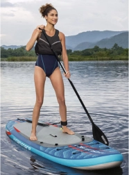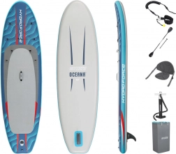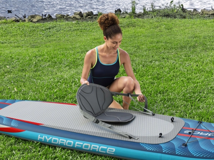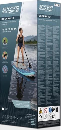 Uniwersalny nadmuchiwany paddleboard HYDRO-FORCE OCEANA 2w1 jest idealny do rekreacyjnego wiosłowania i dłuższych wycieczek. Dzięki sztywnej konstrukcji drop-stitch jest lekki, sztywny i stabilny, a jednocześnie łatwy do przenoszenia w plecaku. W mgnieniu oka zamienisz go w kajak z siedziskiem i oparciem; do tego antypoślizgowa powierzchnia, wyjmowane stateczniki, bezpieczny leash oraz liczne możliwości mocowania i przechowywania wyposażenia.