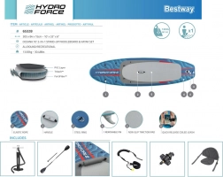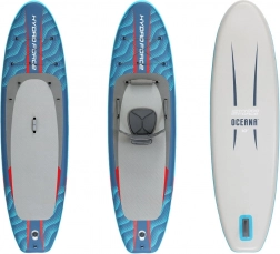 - Kompletny zestaw – deska, wiosło, pompka, leash, siedzisko, podnóżek, plecak, zestaw naprawczy